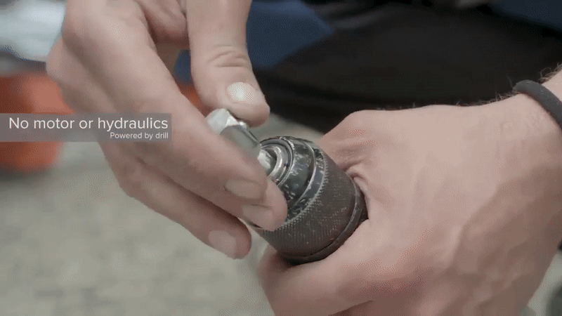 Der Liftechnik™ ist extrem einfach zu bedienen. Es ist keine Installation, kein Spezialwerkzeug und keine spezielle Schulung erforderlich. Dank seiner Portabilität kann er überall eingesetzt werden. Weder Druckluft noch Kabel werden benötigt. Das Anheben erfolgt über eine handelsübliche Bohrmaschine (leistungsstärkere Akku-Bohrmaschinen sowie Handkurbeln und Ratschen funktionieren ebenfalls).